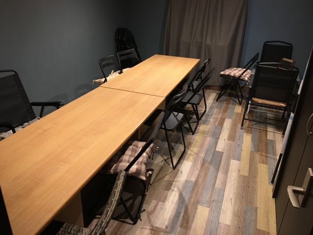 奥のお部屋(防音室)を時間レンタル致します。席数は14席、モニターあります。